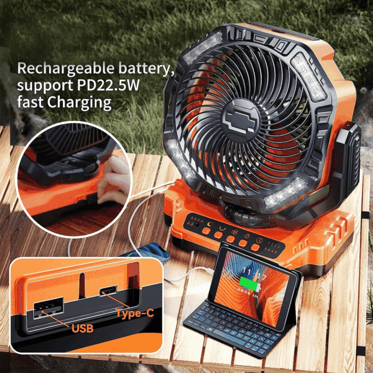 AeroFlow™ - Oppladbar vifte med innebygd strømbank og LED-lys | 35% Rabatt